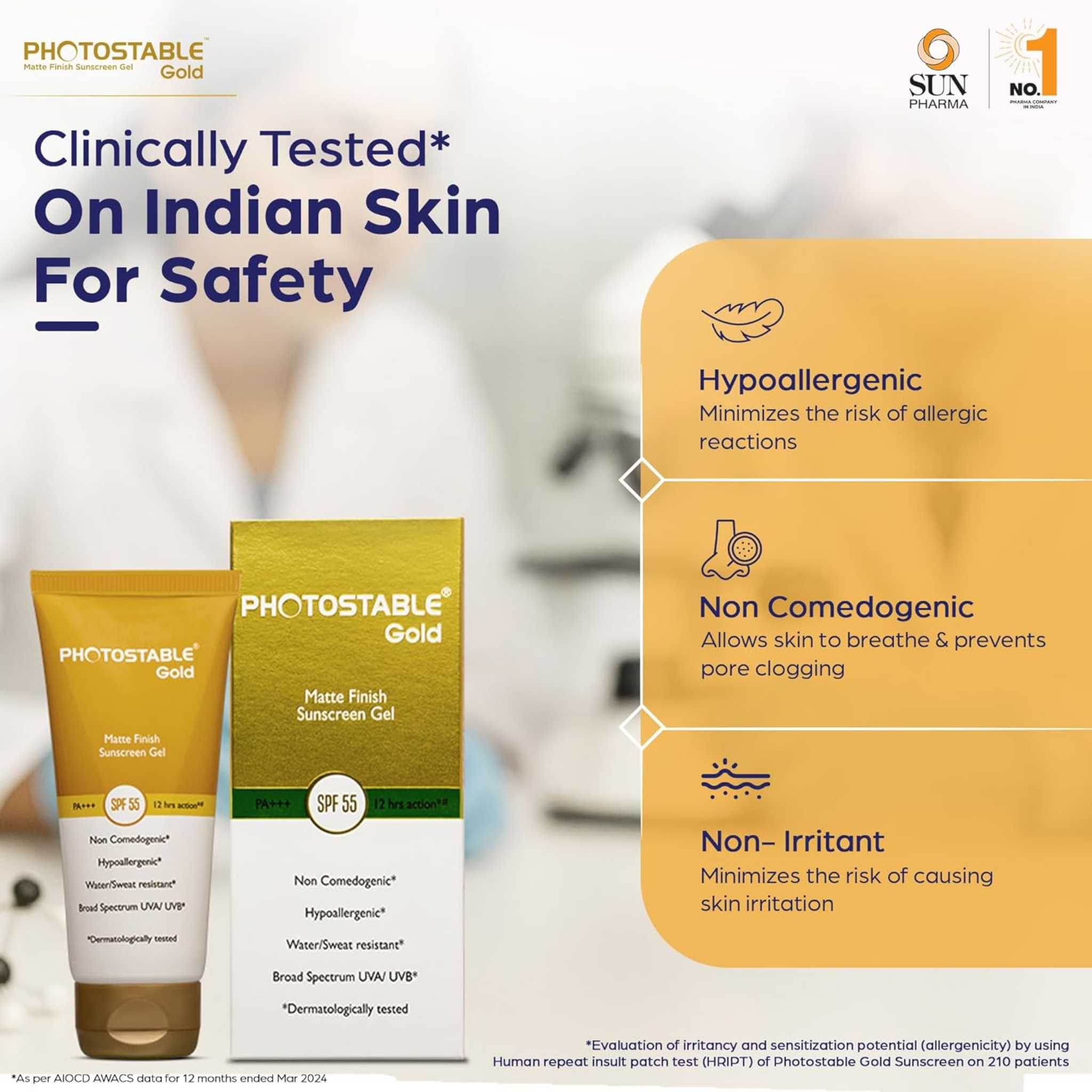 Photostable Gold Matte Finish Sunscreen Gel | PA+++ SPF 55