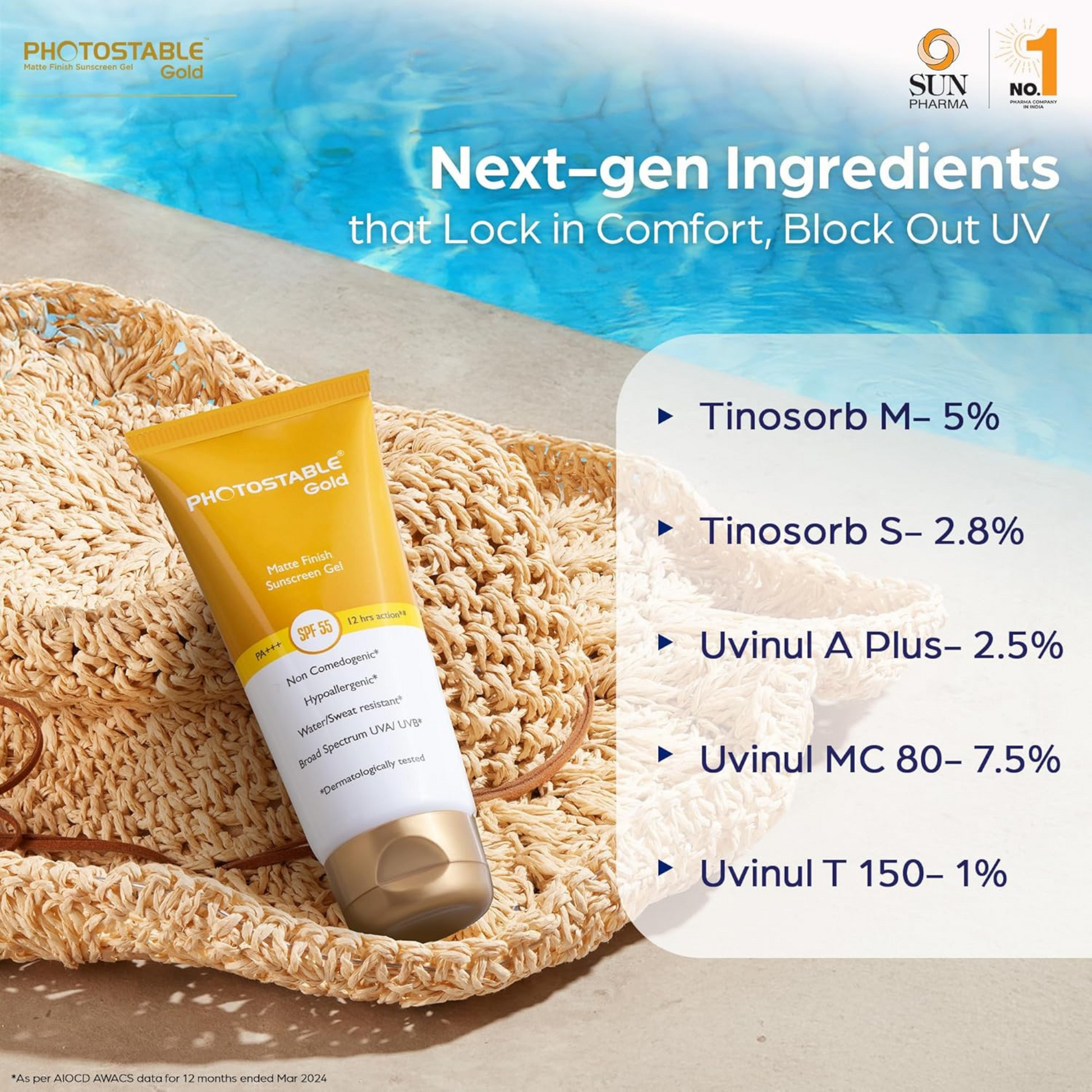 Photostable Gold Matte Finish Sunscreen Gel | PA+++ SPF 55