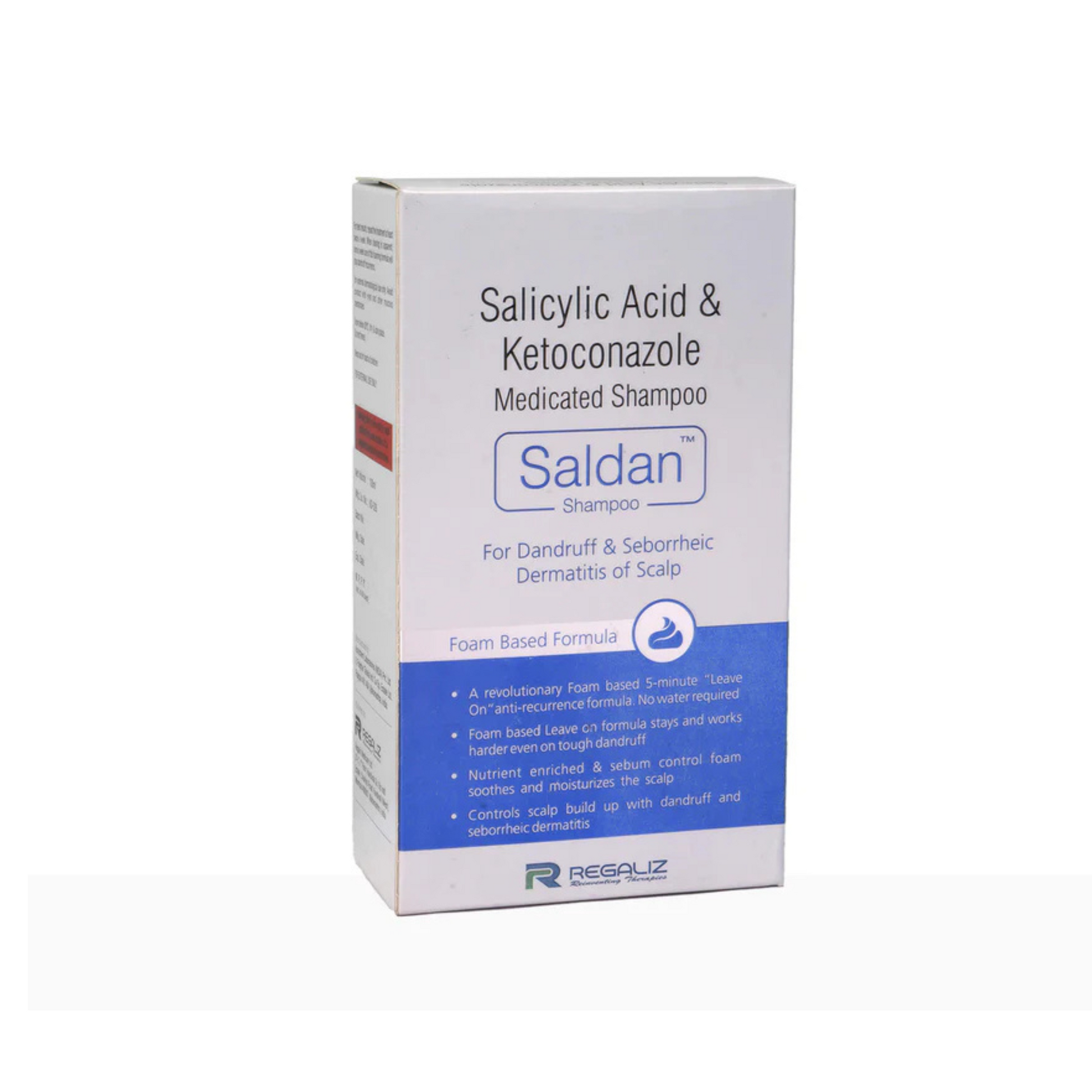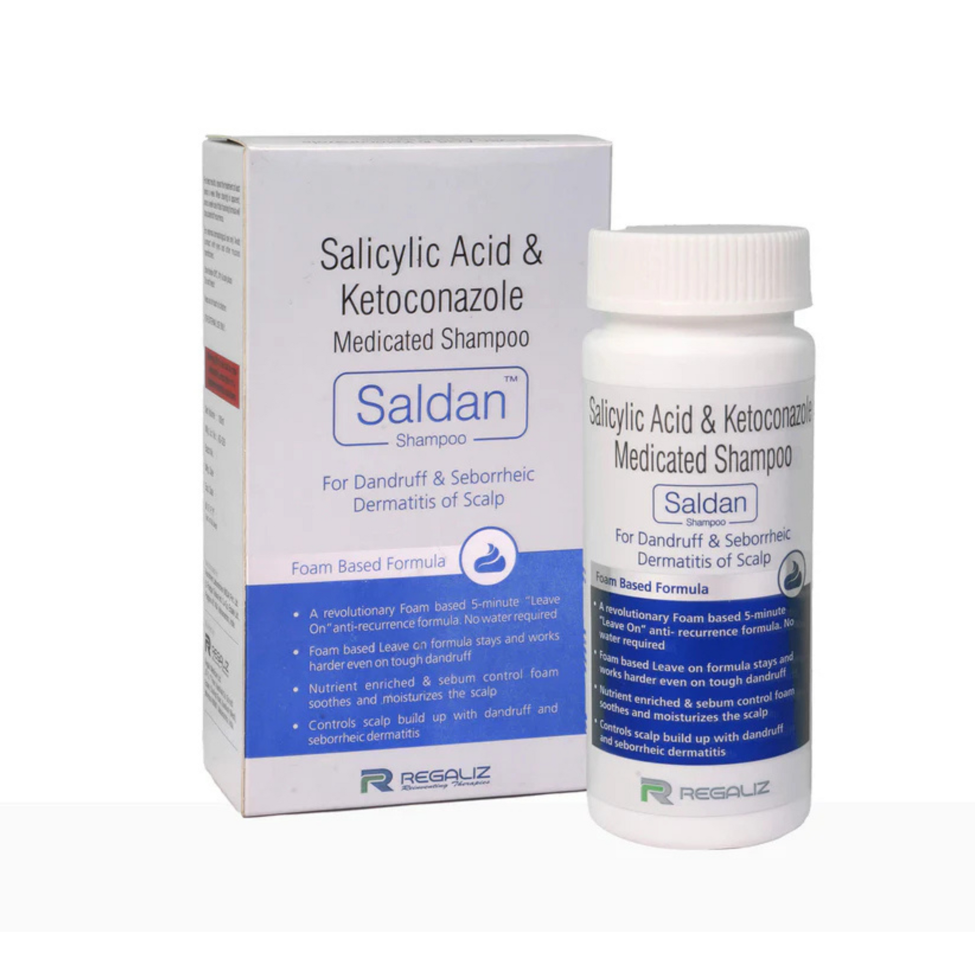 2. Apply a small amount of Saldan Shampoo to the affected scalp area.